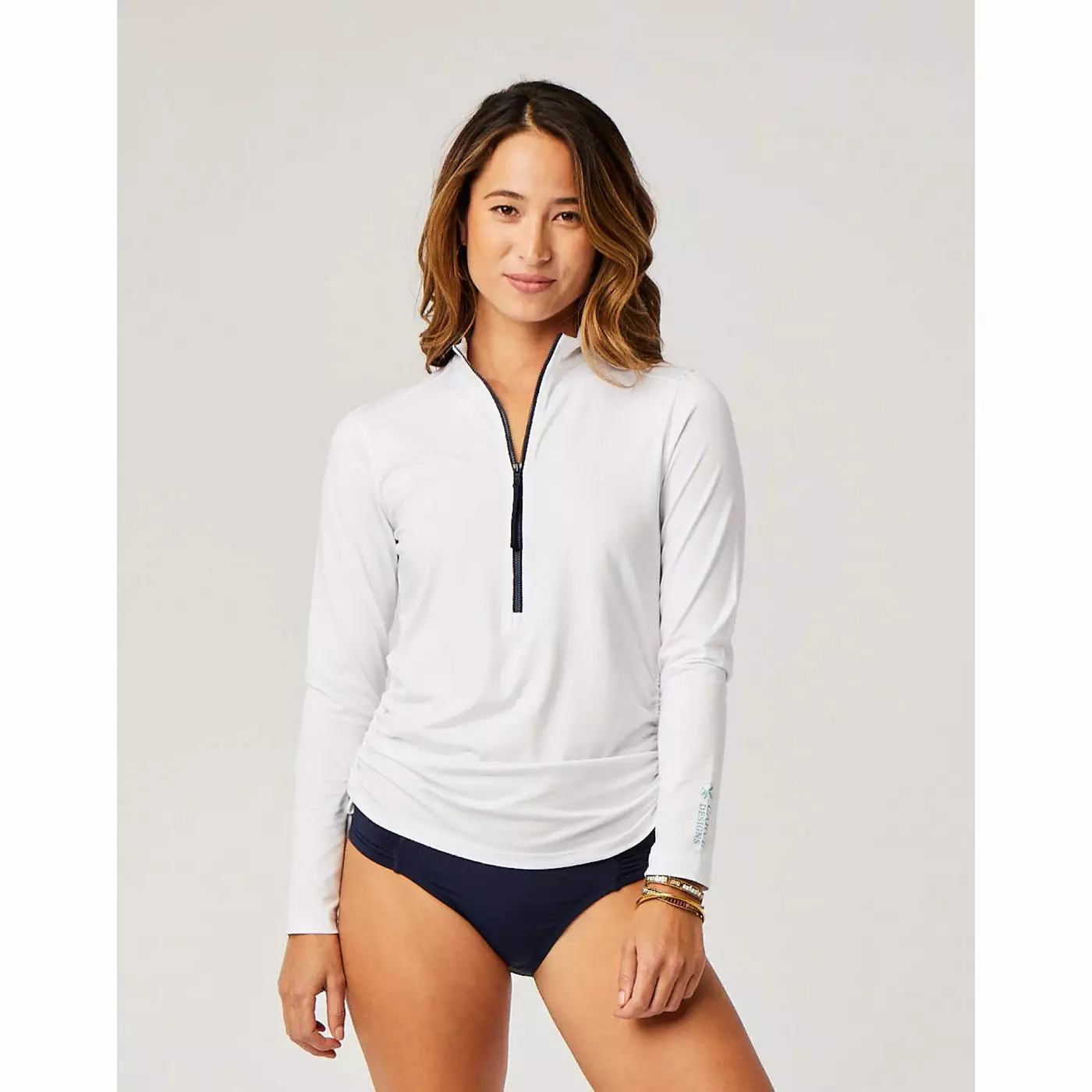 The Cruz rashguard offers lightweight and versatile sun protection with long sleeves for maximum cover up. Quick dry fabric is great for water sports or hiking. Zip neck and shirred sides allow for flattering fitted shape and cooling options.