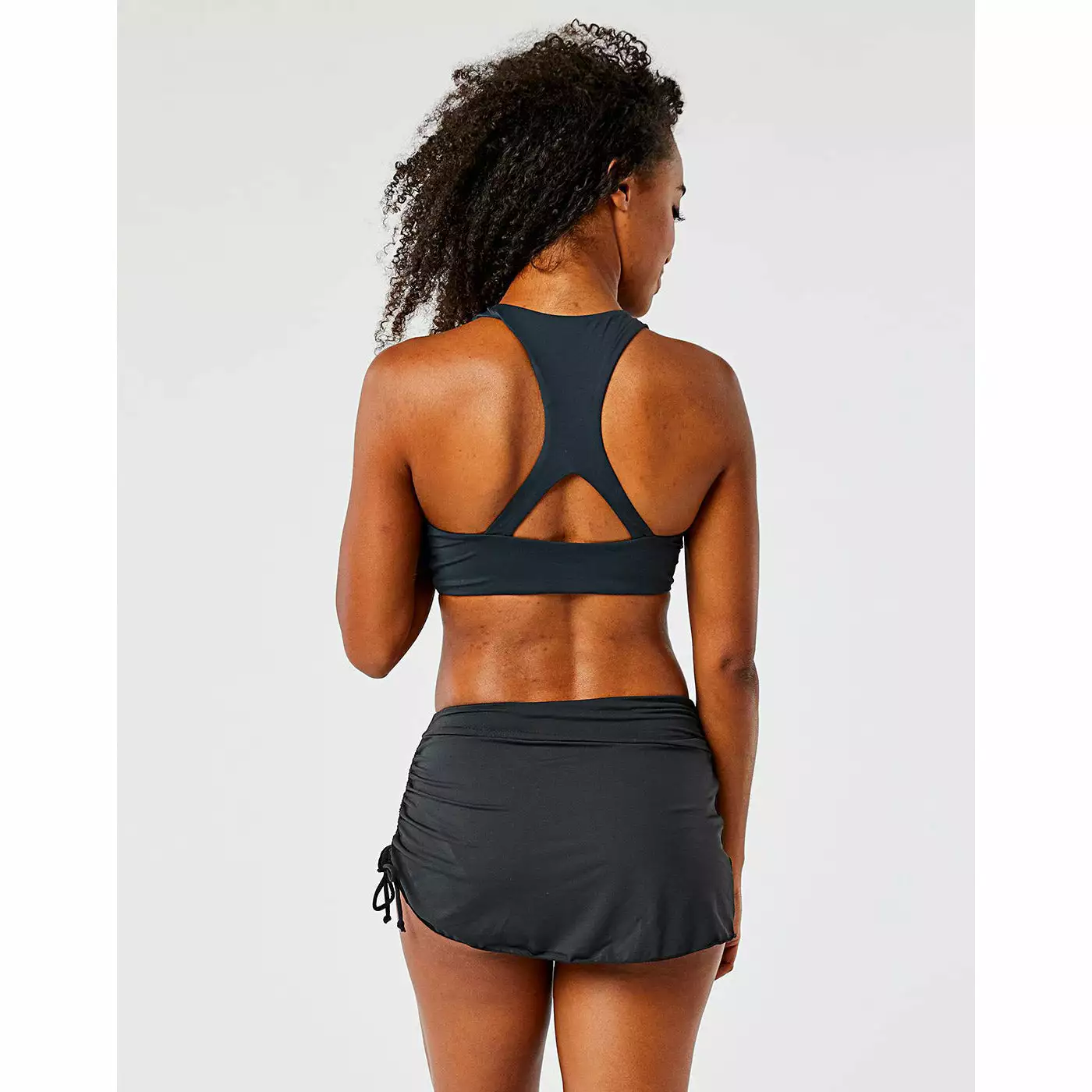 For a little more coverage with a feminine, flirty feel, the Hoku Swim Skirt was constructed with a built-in bikini bottom, ruching at the waist, and a cinch side tie for an adjustable hem length. Keeps your rear covered, lets your playful spirit shine.