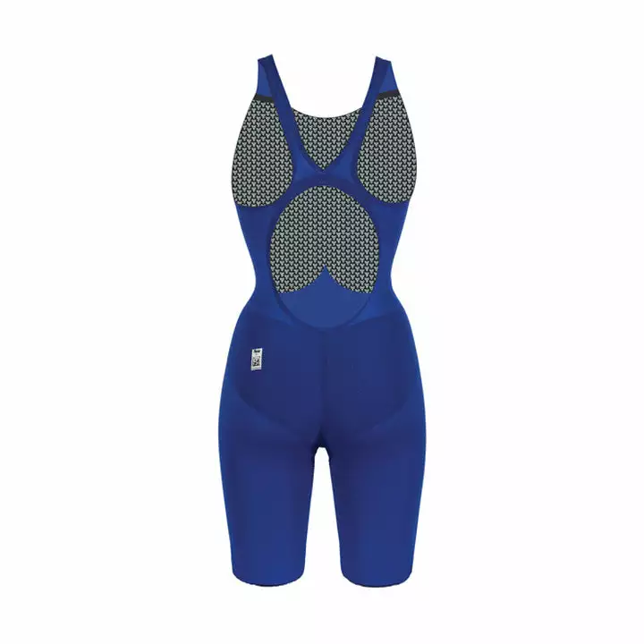 This TiTANIUM Regular Knee Suit speed suit in solid royal blue features 4-stage framing system that is reliable, durable and ready to swim fast. The booster shield liner provides zoned control and works to enhance muscle return. Vapor block works as each TiTANIUM fiber is coated with a superhydrophobic application, which minimizes friction and fabric weight gain in competition. HydroLock weave provides highest strength to weigh ratio in the industry. Welded Chassis initiates a streamlined body to provide superior stability to major muscle groups and added form control over key water displacement zones.