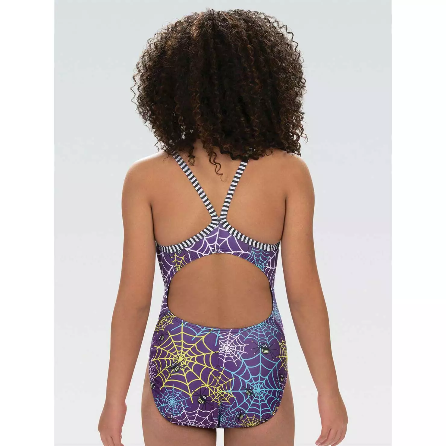 - 1-piece suit in Spin Me A Web print featuring cute little Uglies spiders and spider web pattern