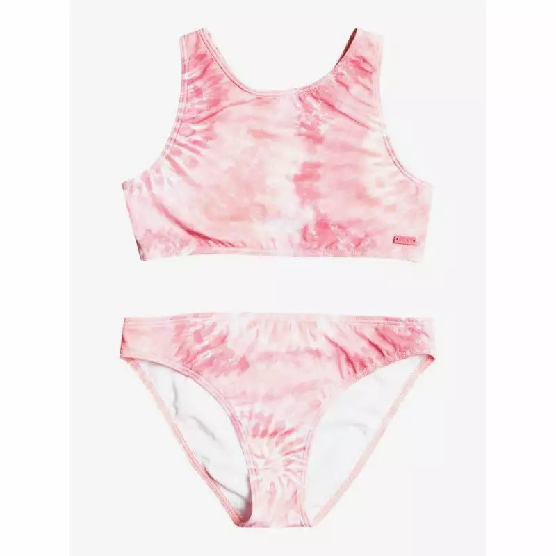 Find your groove this summer with a crop top bikini set for girls from our Colors Reflection Collection, featuring an all over tie-dye print on recycled REPREVEâ„¢ fabric. With plenty of flexibility for maximum performance, you’ll be swimming, diving, and splashing ROXY style.