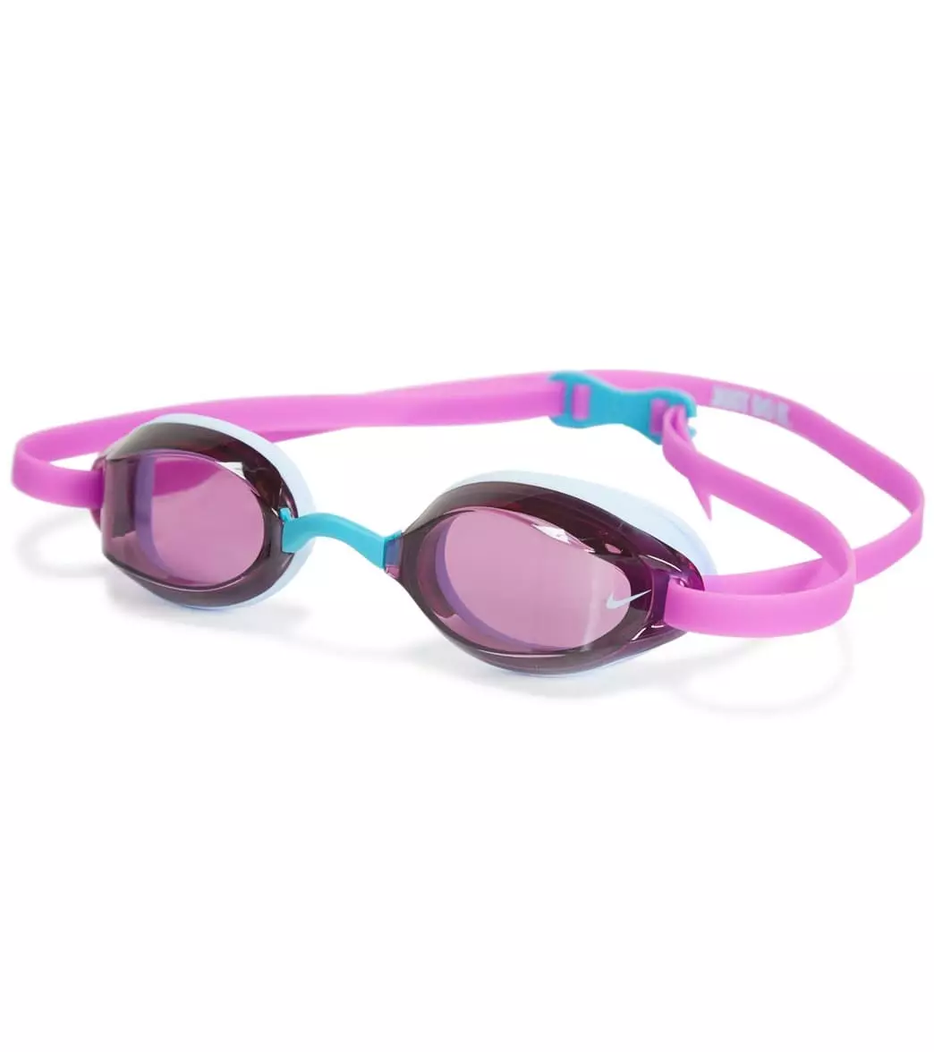 Nike Swim Unisex Legacy Performance Goggle has an ergonomic nose bridge that is designed to fit a wider range of face shapes. The curved back clip fits comfortably against your head and the curved lenses enhance peripheral vision and clarity. The Nike Swift Track nose bridge system allows for fast and easy customization with four bridge sizes to choose from. This goggle is FINA approved.