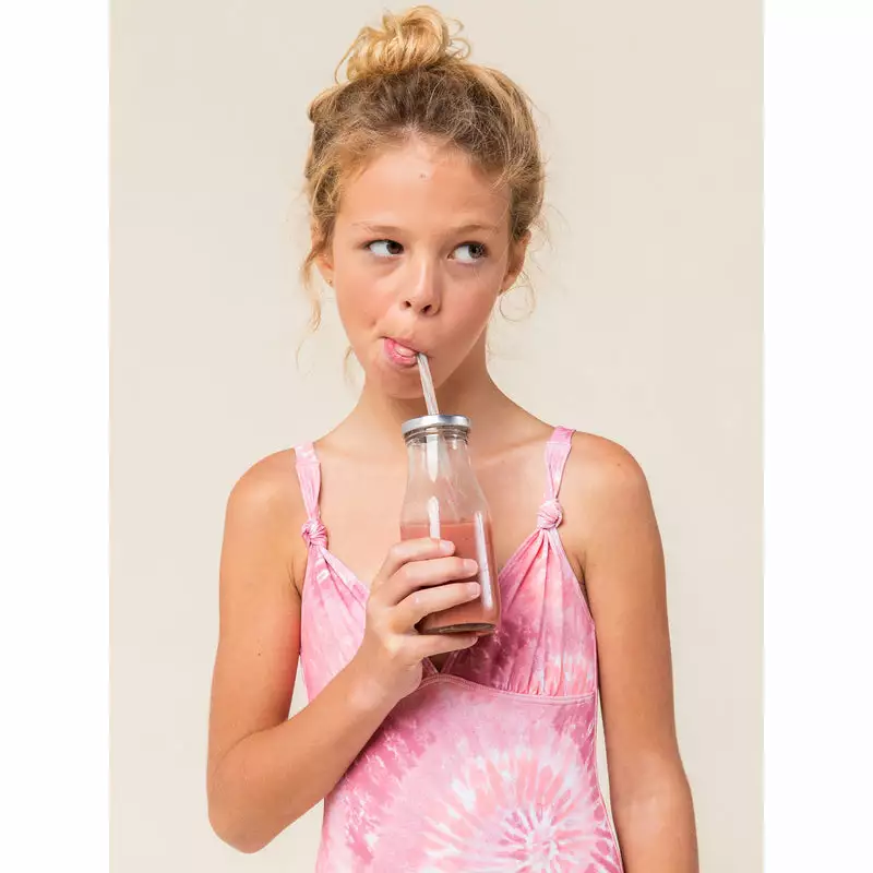 Find your groove this summer with a one-piece swimsuit featuring a soft-colored tie-dye print. The recycled REPREVEâ„¢ fabric ensures flexibility for complete mobility, whether deep end pool diving or wave splashing. Adjustable ring and slider straps provide the perfect fit for nonstop fun.