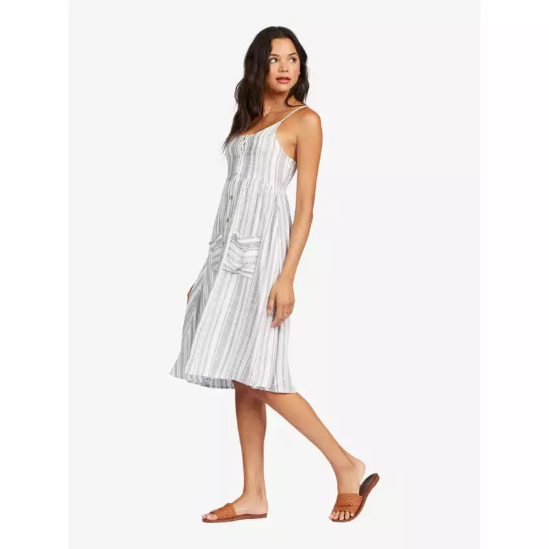 Earn your summer stripes with the Glowing Wave midi-length dress. The lightweight construction features a woven yarn-dyed fabric and elastic back smocking for a fitted bodice. An ultra-cute button front closure and patch pockets aim to make your life easier.Â