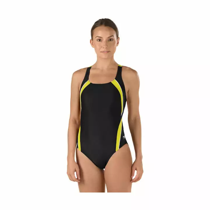 The Speedo PowerFLEX Eco Taper Splice Pulse Back Women’s Swimsuit features Speedos revolutionary, eco-friendly fabric for a performance-enhancing fit. With 4x the compression of standard fabrics, this swimsuit retains its shape up to 10 times longer for an optimal fit.