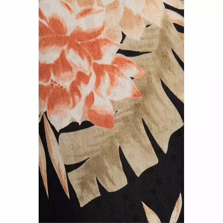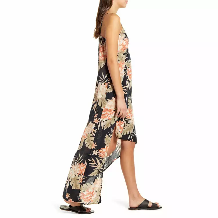 Vibrant tropical blooms enliven this vacation-ready maxi topped with slinky straps and punctuated with a leg-flaunting front opening.
