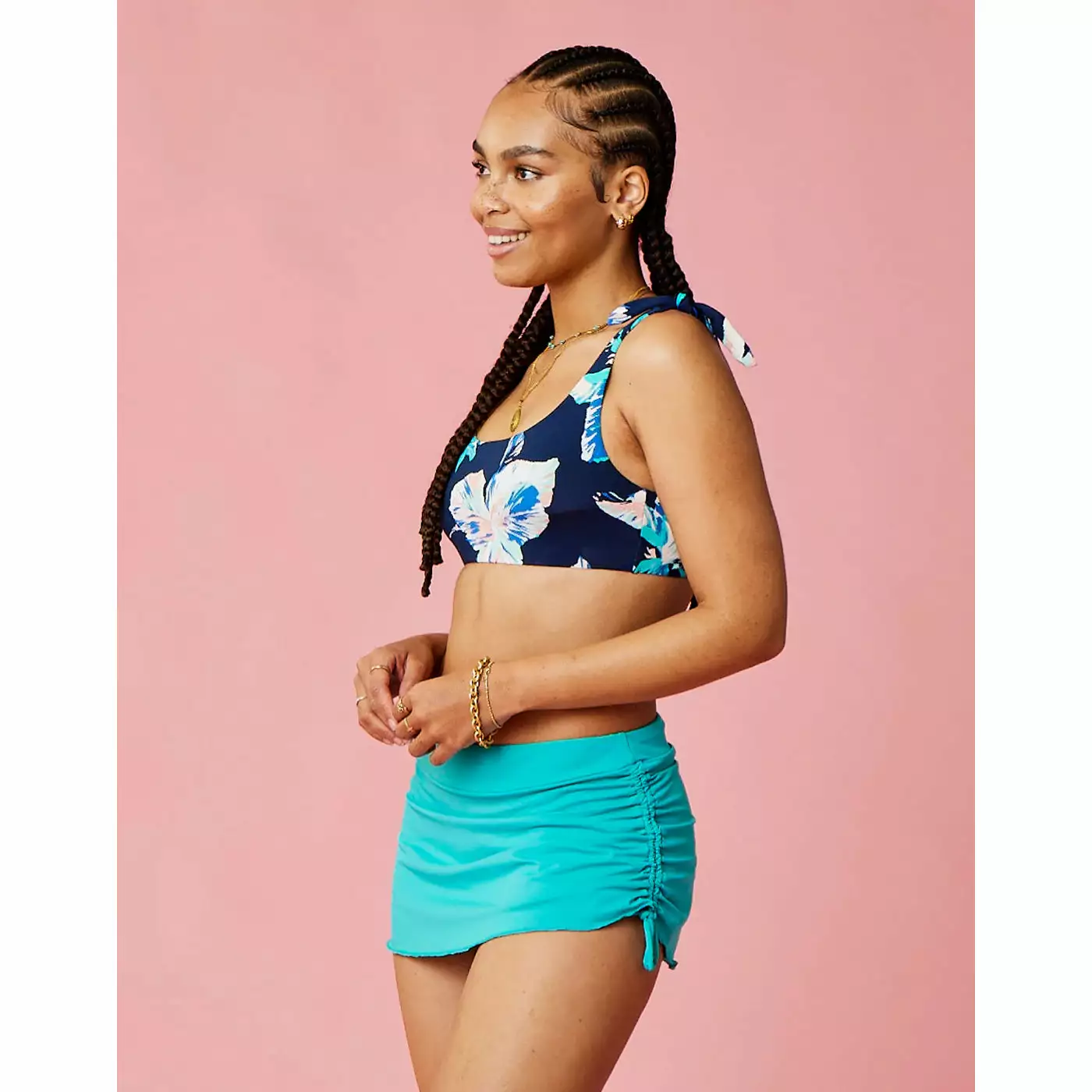 For a little more coverage with a feminine, flirty feel, the Hoku Swim Skirt was constructed with a built in bikini bottom, ruching at waist, and a cinchable side tie for an adjustable hem length. Keeps your rear covered, lets your playful spirit shine.