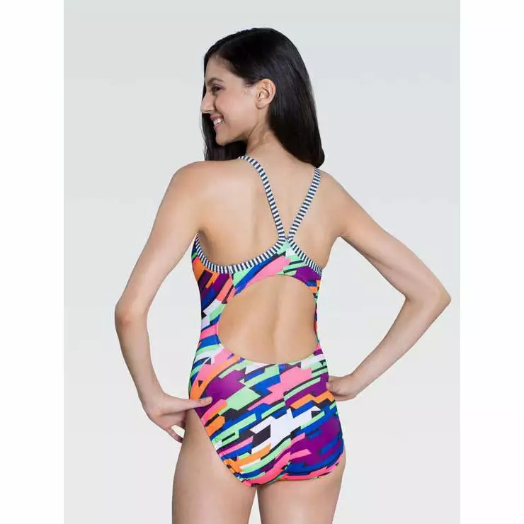 No other brand can compare to America’s #1 practice suit! The Dolfin Uglies Speedy One-Piece V-2 Back swimsuit contains excellent fit, extreme durability and a fun, on-trend print that is sure to make you stand out. Featuring candy stripped binding and brightly colored liner, this is the perfect swimsuit to add some fun to your training!