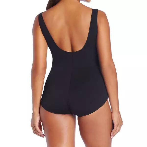 Fashion and function meet in this swimsuit designed to flatter and perform in and out of the pool. Glide through water with confidence thanks to Endurance+ fabric that offers four-way stretch and shape retention for a comfortable fit. A shirred front and Core Compression technology provide a slimming effect, while a plunging back and built-in bra cups provide support.