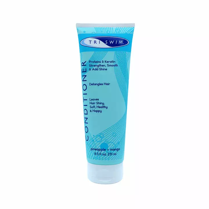 TRISWIM conditioner is great for swimmers who wish to re-hydrate their hair after long hours in the chlorinated pool! TRISWIM’s conditioner is formulated to hydrate and condition, helping to improve dry and damaged hair without leaving a heavy buildup. TRISWIM conditioner has a invigorating citrus scent leaving the hair shiny, silky and healthy. Results best when used in conjunction with TRISWIM Shampoo!